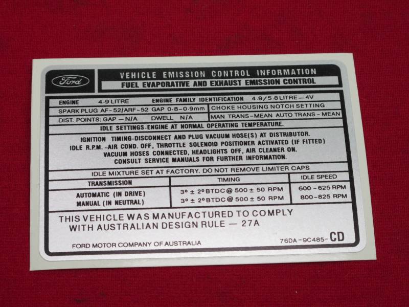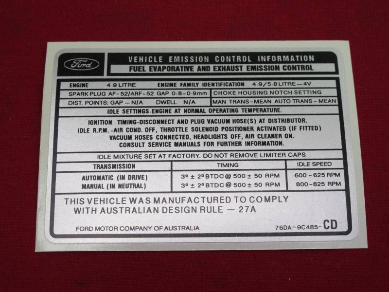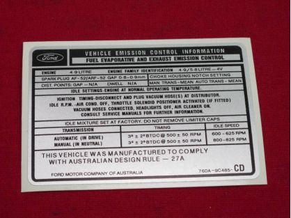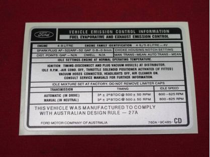 4.9 XD XE EXHAUST EMISSION DECAL