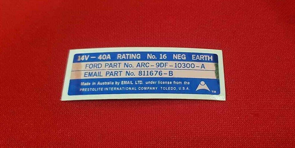 Email 40amp Alternator Decal Blue on Chrome Foil XW XY Fairmont GT